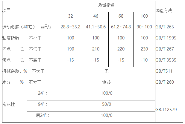優良的抗磨、防銹、防腐性、抗氧化性,減緩設備的磨損和油品的衰變速度,延長油品和設備的使用壽命;優良的抗泡沫性及空氣釋放性,比含鋅抗磨液壓油更能保護設備,尤其減少對銅、銀部件的腐蝕。抗乳化性能好,與丁晴橡膠密封材料有良好的適應性。